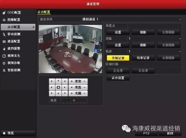 录像机:【主菜单】-【通道管理】-【云台配置】